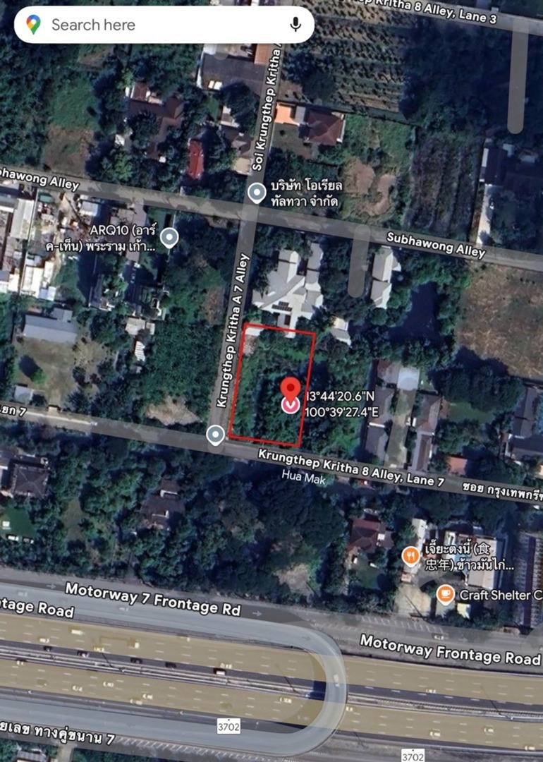 6810-073 ขาย ที่ดิน 1 ไร่ กรุงเทพกรีฑา ติดถนน 2 ด้าน เหมาะสำหรับทำที่พักอาศัย